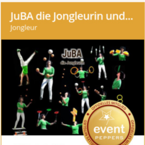 Ganz tolle Artistin! Wir hatten schonmal einen Jongleur aus Thüringen bei uns, der uns jedoch mit seiner ganzen Art überhaupt nicht zusagte.. dennoch wagten wir eine weitere Jongleur-Buchung und entschieden uns für JuBA, da sie allein schon durch ihren Internetauftritt ein sehr gutes und professionelles Bild gibt. UND… wir haben unsere Entscheidung mit keiner Silbe bereut! JuBA hat uns eine so tolle Show geboten – definitiv um Welten besser, als das was wir zuvor sahen. Herzlich, sympathisch und vor allem sehr sehr freundlich. Genau das, was man von einem guten Künstler erwartet. Professionalität, Freundlichkeit und eine gute Show. Herzlichen Dank, dass Sie durch Ihren Auftritt und Ihre Präsenz unser Bild von Jongleuren so positiv verändert haben. Wir empfehlen Sie auf alle Fälle weiter!