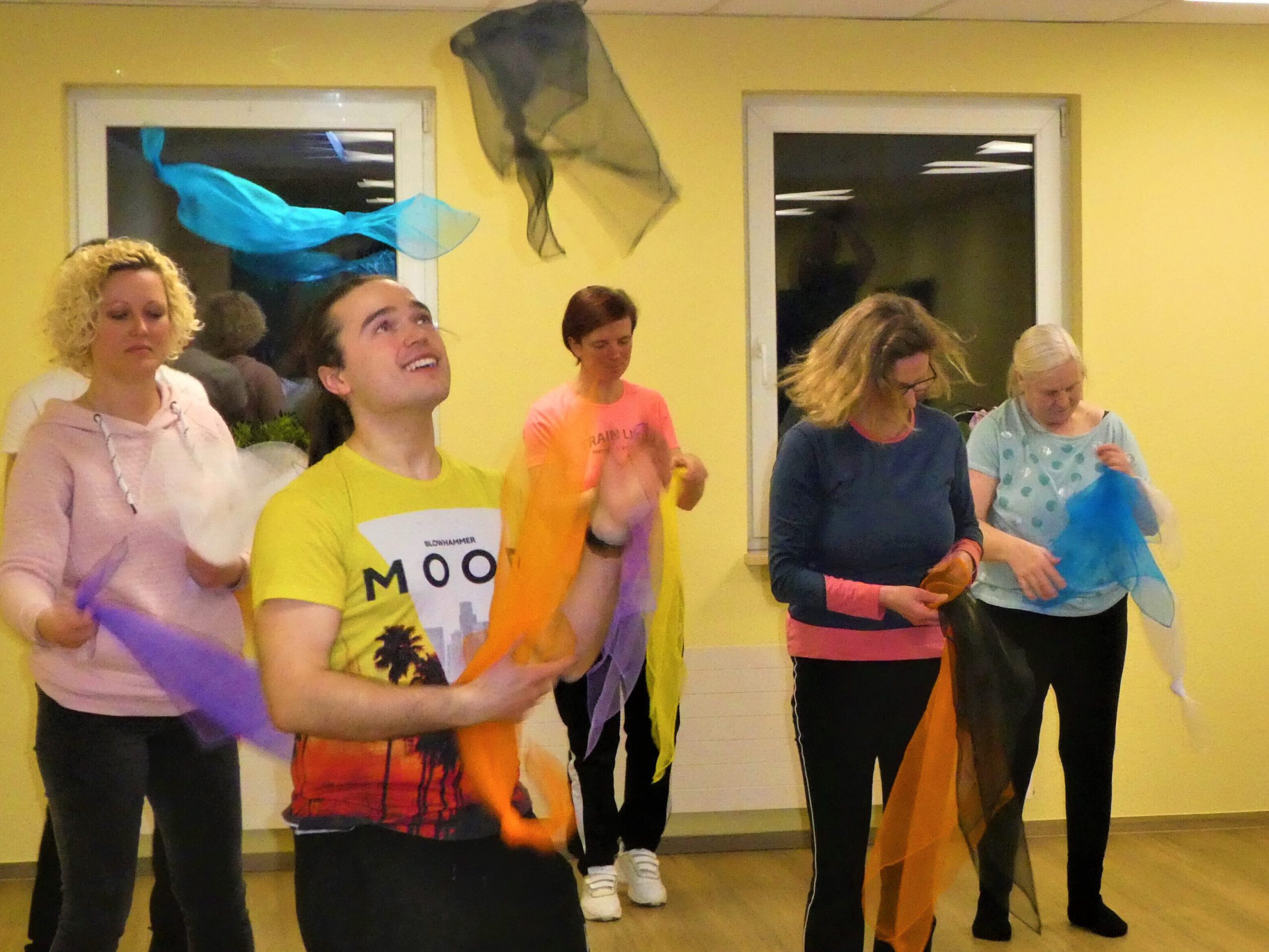 Die Vielzahl von Koordinationsspielchen und zu erlernenden Tricks führt bei den Teilnehmern mehr als oft zu herzhaften Lachern, wenn die Jongliersachen quer durch die Luft segeln.